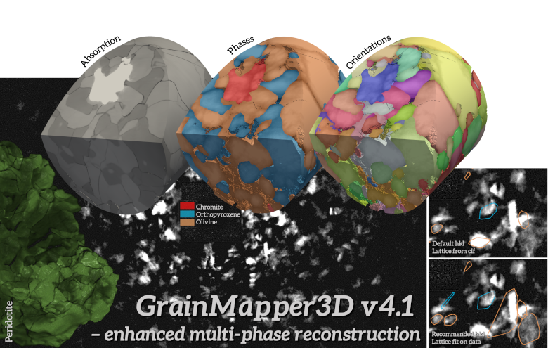 We are proud to announce the release of GrainMapper3D version 4.1, enhancing reconstruction of complex samples containing more than one crystalline phase. GrainMapper3D version 4.1 gives easier access to crystallographic information for polycrystalline materials, especially those containing multiple phases of lower crystallographic symmetry, while still enabling correlation with complimentary information on e.g. cracks, porosities and inclusions – non-destructively.